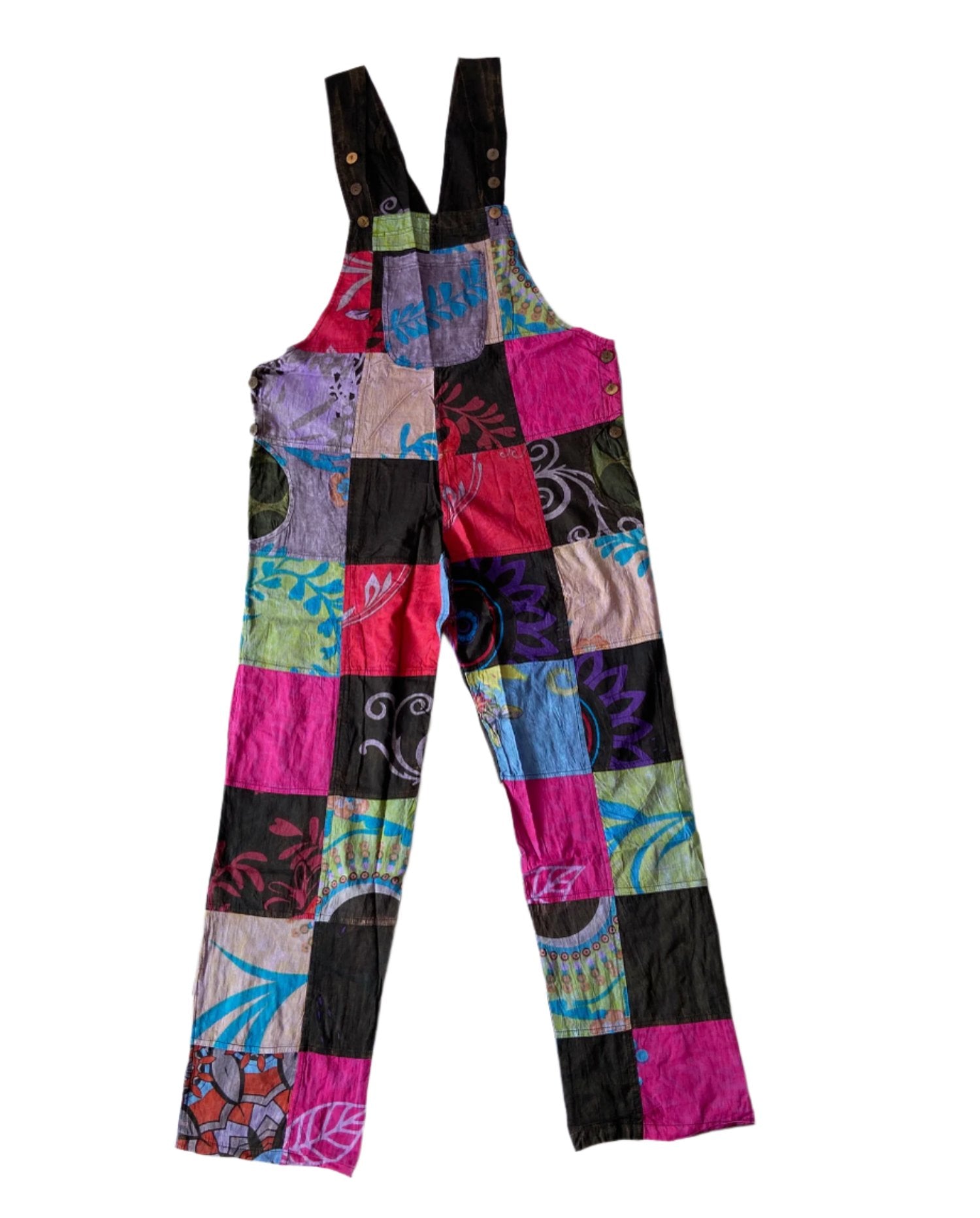 Hand crafted in Nepal, these bohemian cotton patchwork overalls are the perfect blend of comfort and style. With a full patchwork design on both sides and two side pockets, they offer both functionality and unique fashion. Available in a variety of prints, each pair is made ethically and supports fair trade practices.